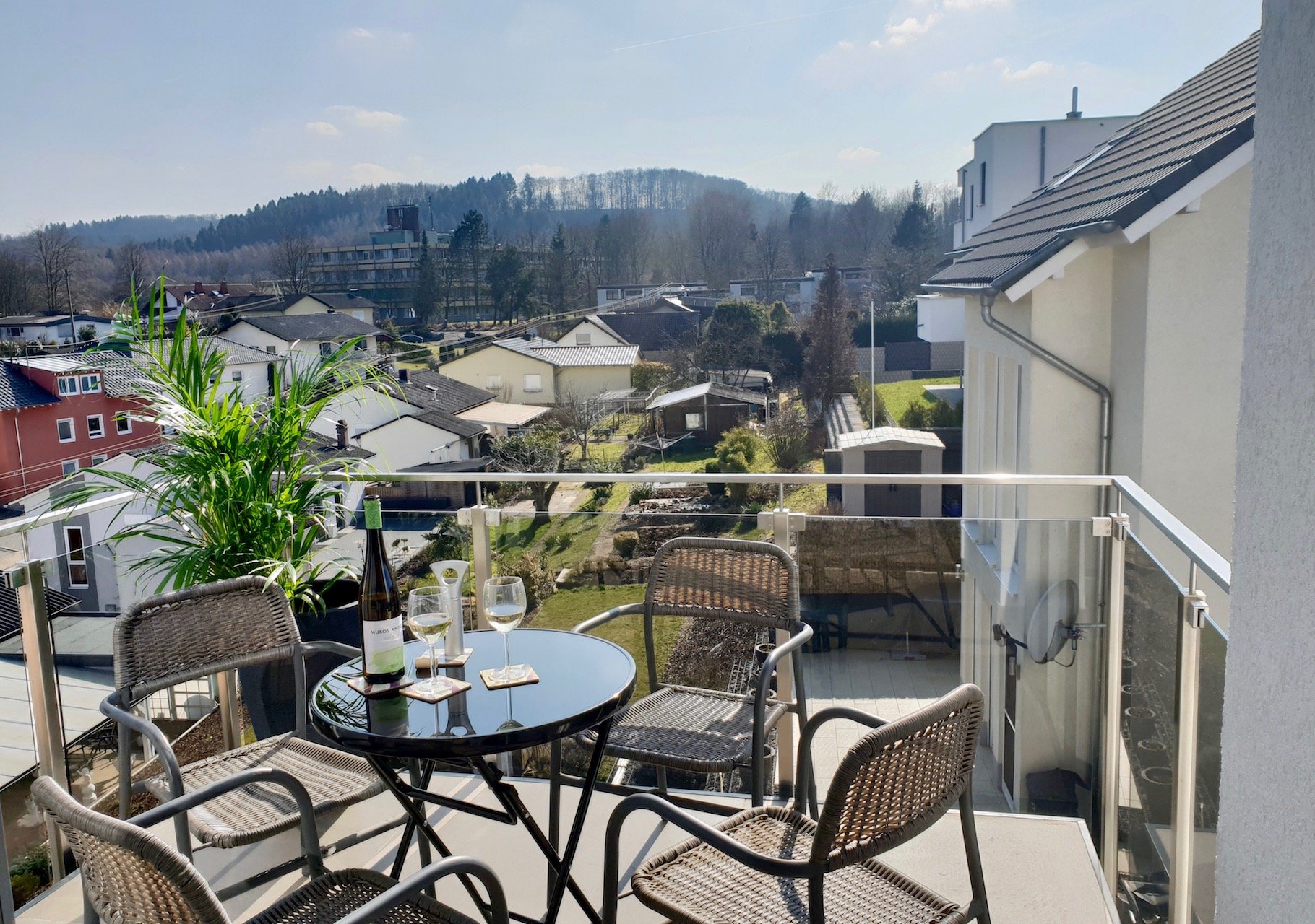 - möblierter Balkon mit Panoramablick